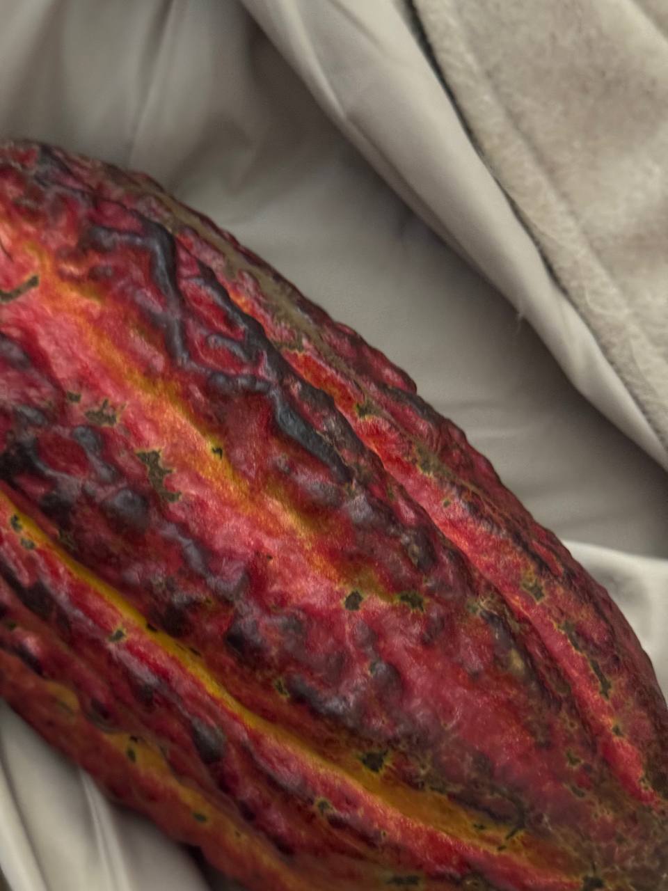 Вчера на рынке купил у перуанцев какао, как правило в их палатках продают чаще всего всякую экзотику. Кайфанул от плода: оно очень красивое и инопланетное, будто того и гляди из него кто-то вылупится.