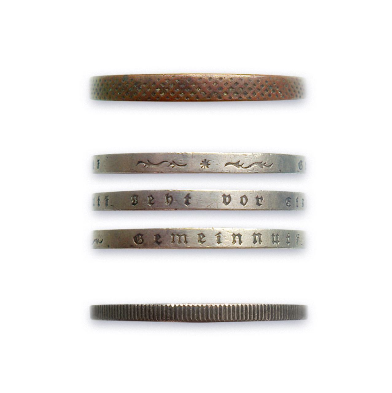 Засечки на ребре монеты называются «Гурт». Раньше все монеты были без гурта и изготавливались из золота или серебра. Некоторые хитрые персонажи стачивали монету по кругу, чтобы получить стружку и переплавить её — так они зарабатывали деньги, а монеты становились меньше и легче. Другие хитрецы отливали монеты в домашних условиях и становились богаче. Чтобы защитить монеты и сон казначеев придумали делать гурт. Для меня это пример хорошего дизайна — одновременно функционального и красивого.